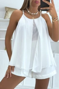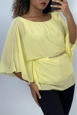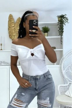 Top Court Fuchsia Avec Coque à La Poitrine Et Joli Noeud Manches Courtes Et épaules Dénudées