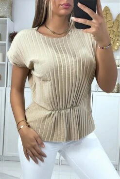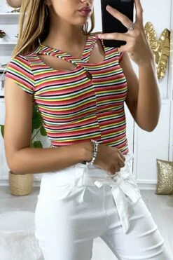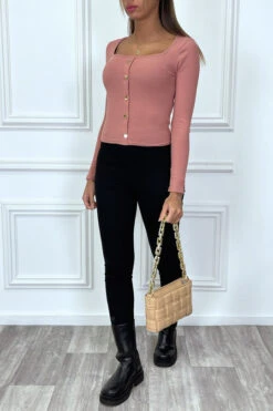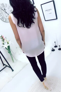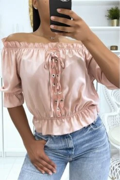 Top Rose élastique à La Taille Et Au Niveau Des épaules Avec Jolis Lacets Croisés à L'avant