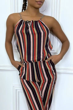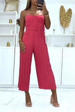 Combinaison Pantalon Rose Fuchsia En Voile Plissé Effet Bustier Sans Manches à Ceintures