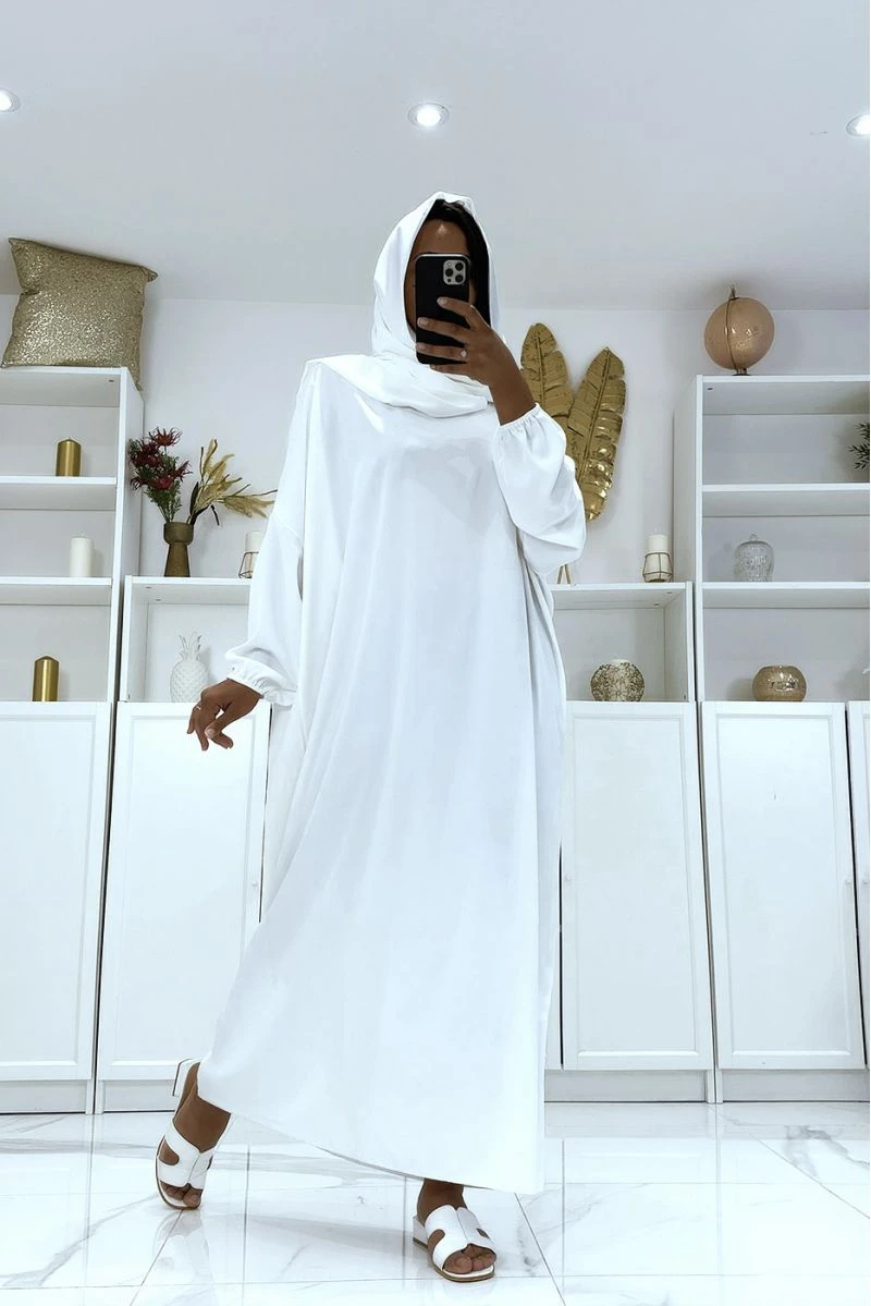 Abaya blanche avec voile intégré pas chère couleur vitaminée