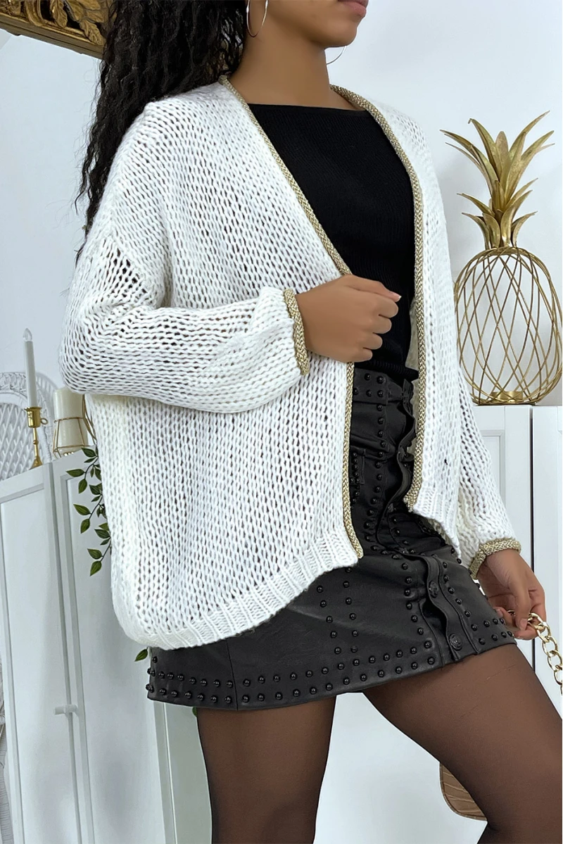 Cardigan blanc en grosse maille. Gilet Ă©pais et ouvert lĂ©gèrement oversize bien chaud et douxÂ