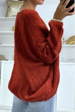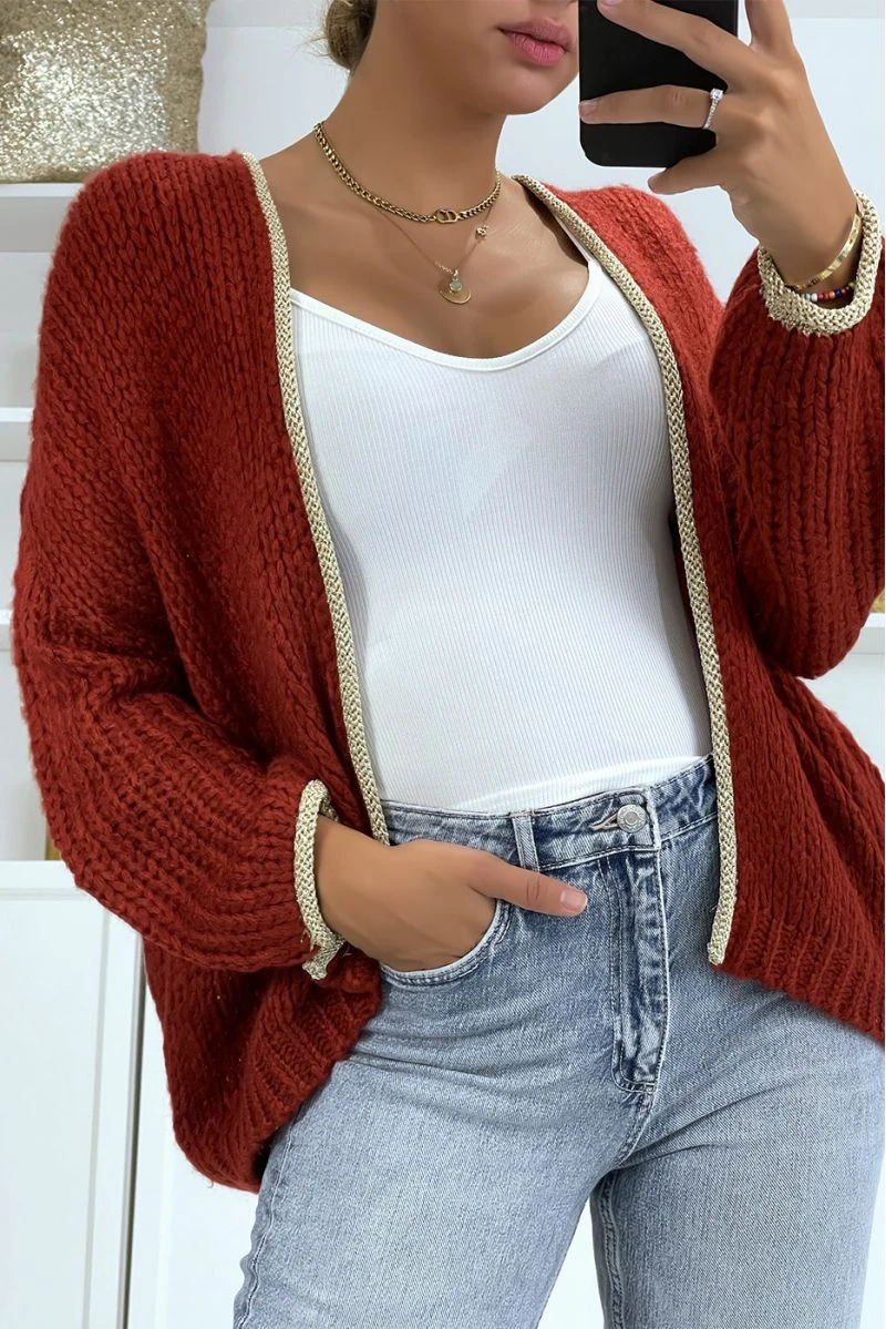 Cardigan bordeaux en grosse maille. Gilet Ă©pais et ouvert lĂ©gèrement oversize bien chaud et douxÂ