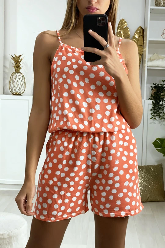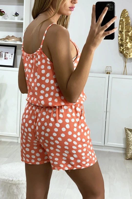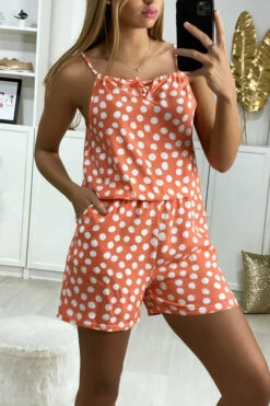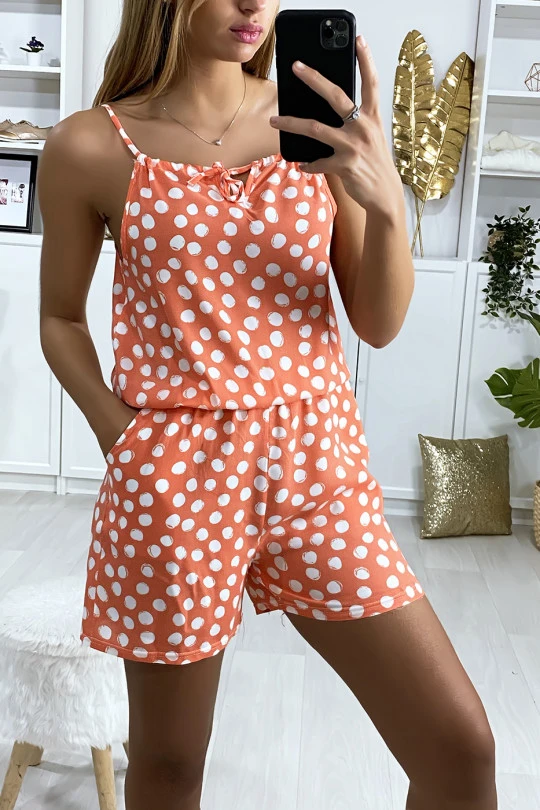 Combi-short femme en rose Ă pois en coton avec lacet au bretelle. VĂŞtement femme pas cherÂ