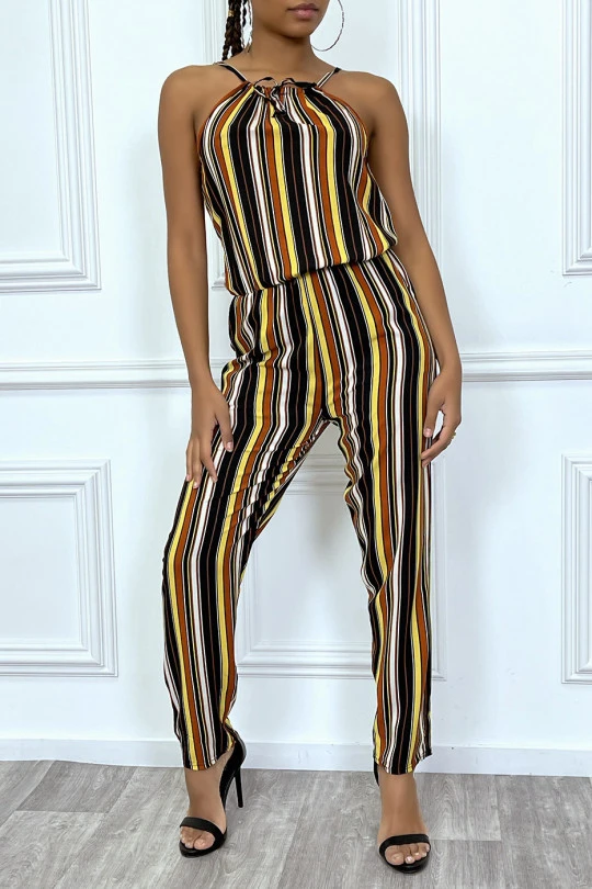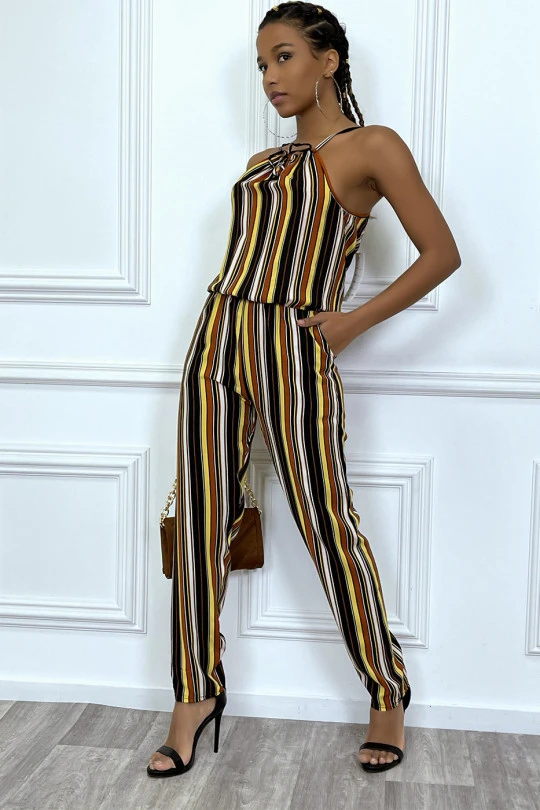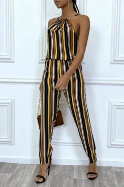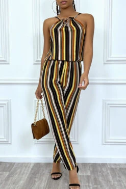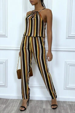 Combinaison pantalon jaune Ă rayures et col montant