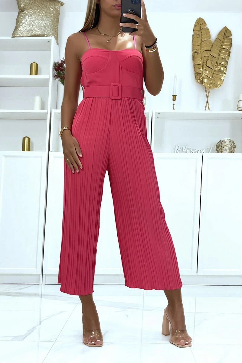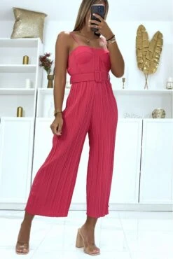 Combinaison pantalon rose fuchsia en voile plissé effet bustier sans manches à ceintures