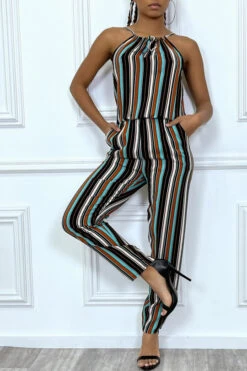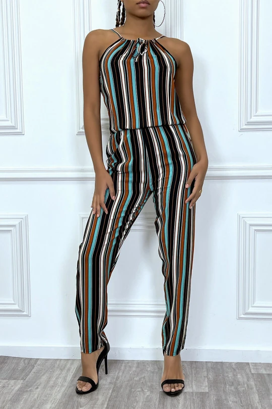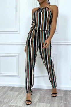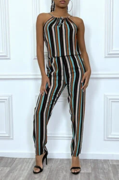 Combinaison pantalon vert d’eau à rayures et col montant