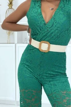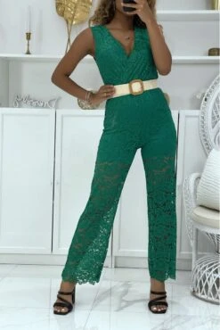 Combinaison pantalon vert en dentelle doublé vendu sans la ceinture