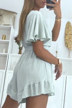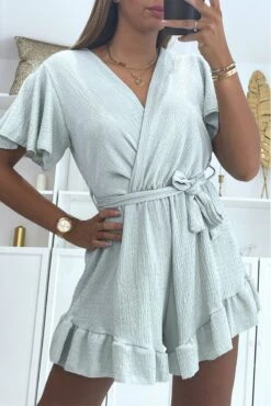 Combishort cache-coeur vert d’eau fluide Ă volant