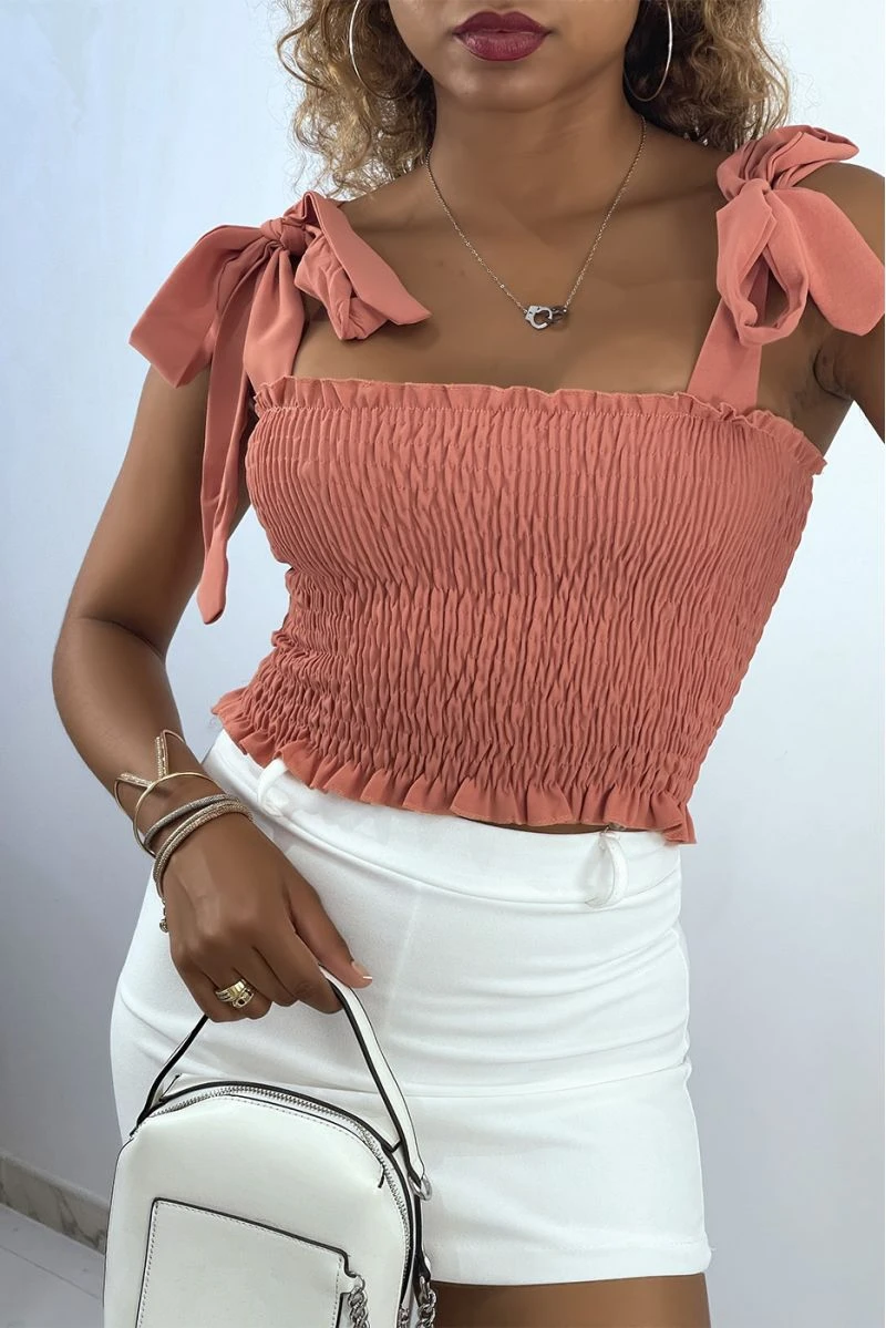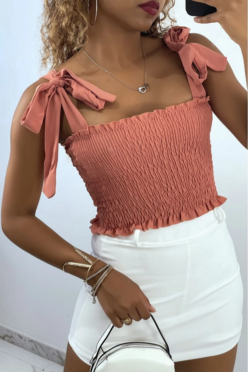 Crop top bustier froncé rose foncé avec bretelle à nouer