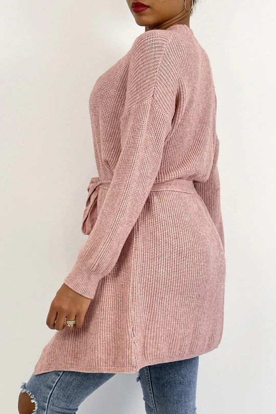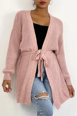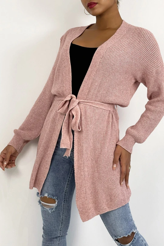 Gilet Fluide Rose En Maille à Nouer à La Taille