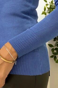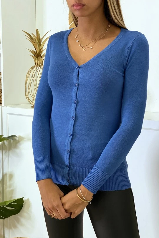 Gilet indigo en maille tricot très extensible et très doux. Gilet femme tendance, un basic indémodable à porter à toutes les occasions