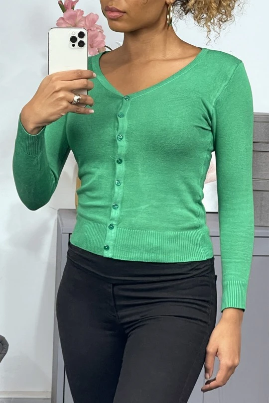 Gilet vert clair en maille tricot très extensible, l’incontournable classique Gilet femme tendance, un basic indĂ©modable Ă porter Ă toutes les occasionsÂ