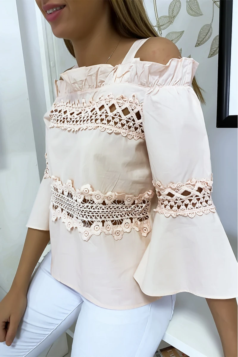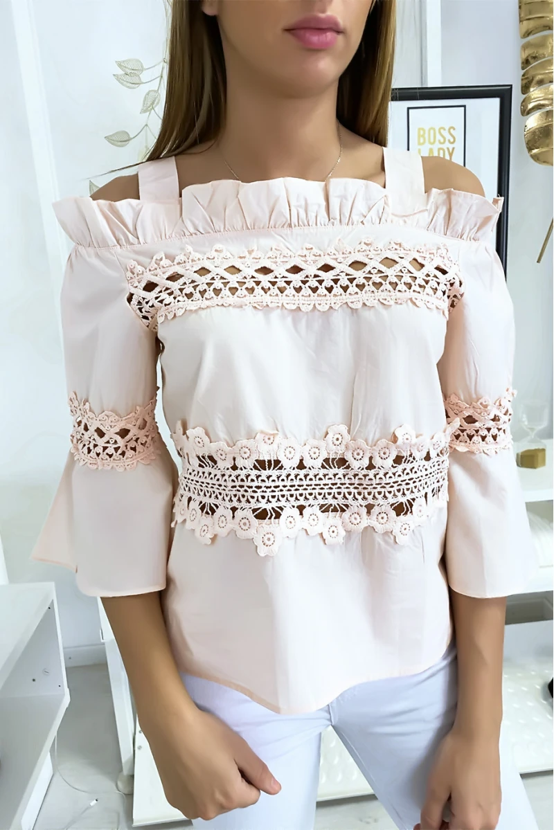 Haut blouse rose Ă crochets, une jolie tendance femme Ă porter pour toutes les occasions.Â
