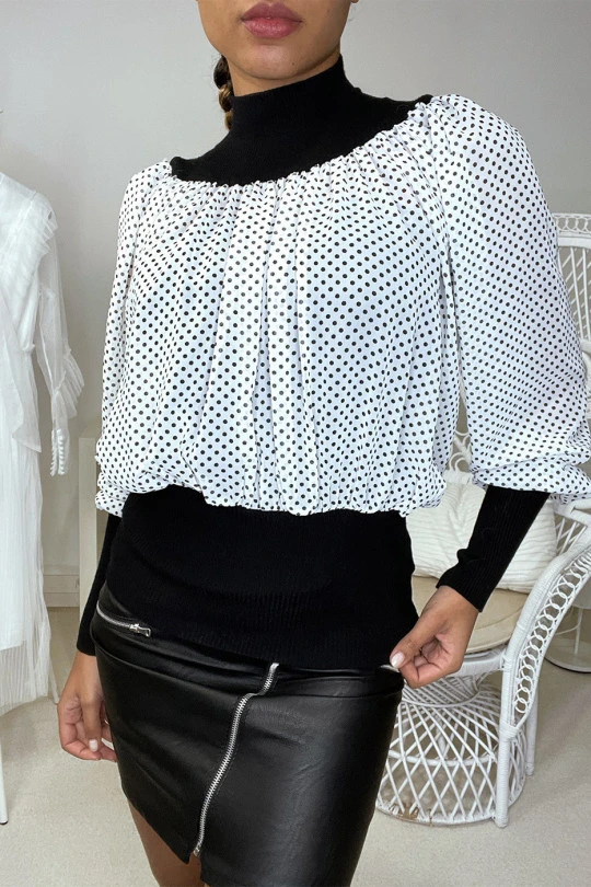 Haut bouffant blanc et noir avec petit pois. Mode femme pas cherÂ
