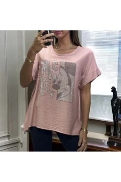 Haut over size manche chauve souris vert motif fleur en maille tricot