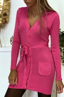 Long gilet Fuchsia pour femme en maille tricot très doux et extensible. Gilet femme très chic et agrĂ©able Ă porter pour tous les joursÂ