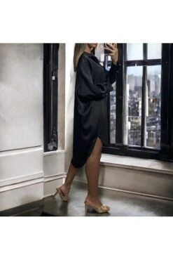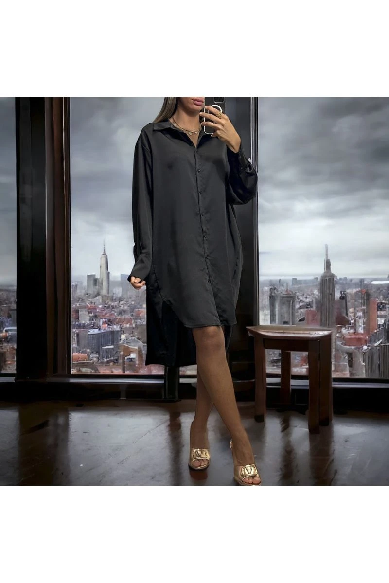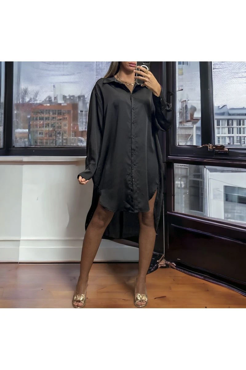 Longue chemise satinĂ© noir over size jusqu’au 50
