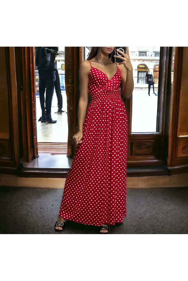 Longue Robe Ă  Pois Rouge Et Blanc Bretelles Amovible