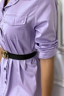 Longue robe chemise lila avec poches ceinture et fente. Magnifique robe chemise noir manche retroussĂ© très classe, enfin une robe belle working girl.Â