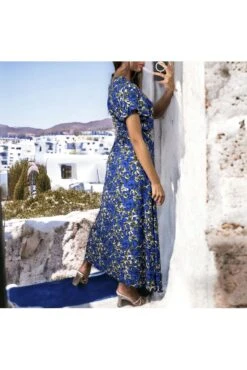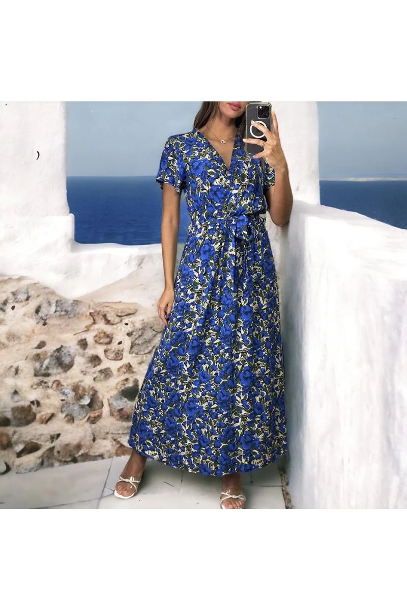 Longue Robe Croisé Motif Fleuris Royal