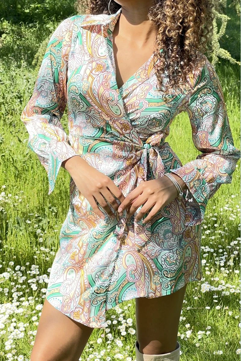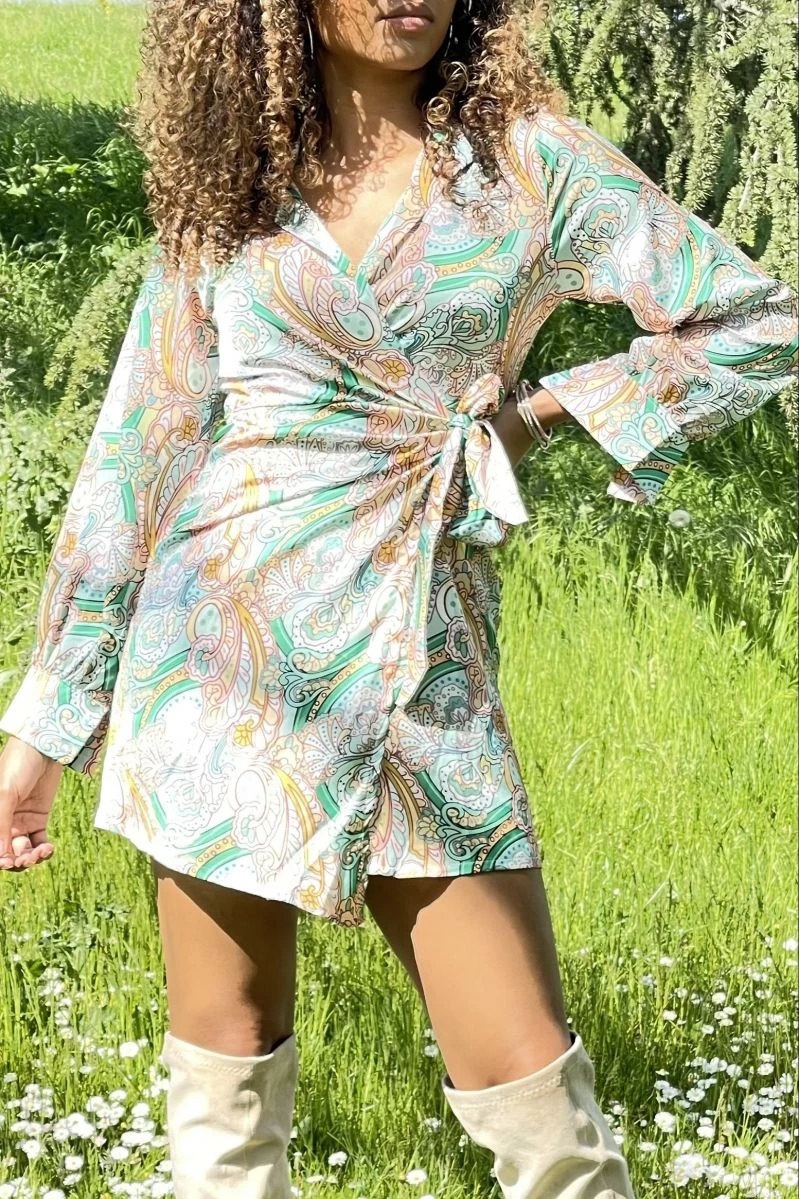 Robe courte Ă ceinture qui se noue Ă la taille, effet cache coeur tendance. Robe courte Ă manche longue fleurie idĂ©ale pour l’Ă©tĂ©.