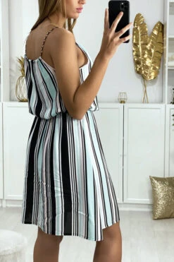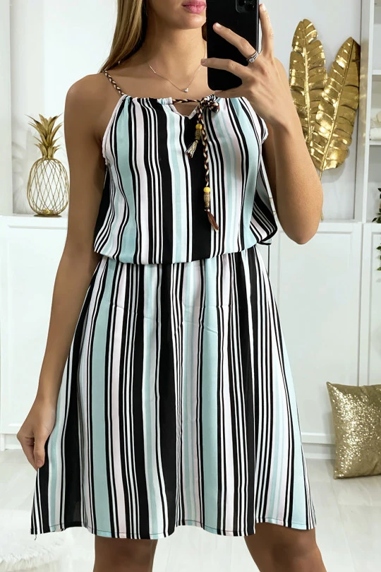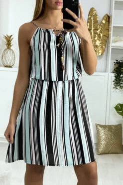 Robe en coton rayé turquoise et noir très agréable pour à porter. Mode femme pas cher