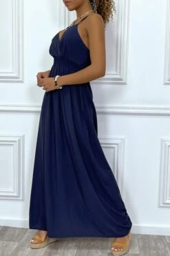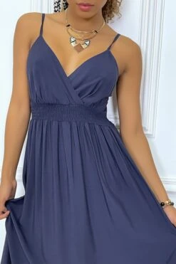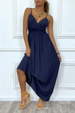 Robe longue marine décolleté cache-coeur et serrée à la taille