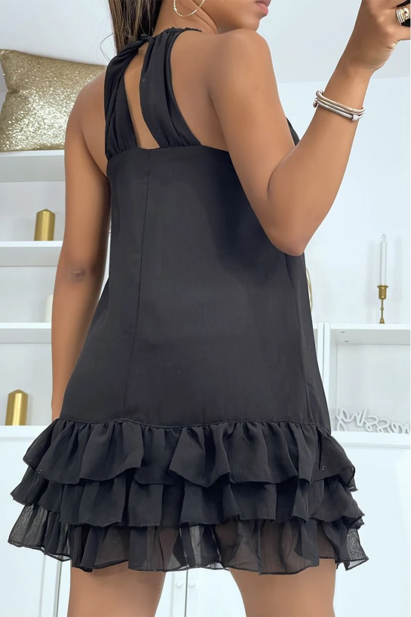 Mega destockage Robe noir sans manches, a fine bretelles avec bas ondule et doublure. 925