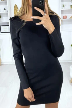 Robe pull noir dos nu contouré de fleures en voile. Robe fashion et tendance 2020