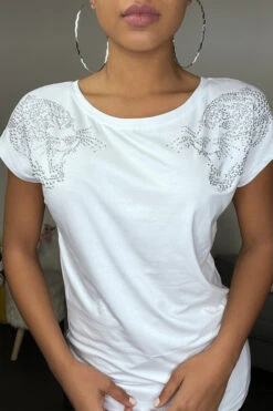 T-shirt Blanc Ă  Strass Et Zip Au Dos