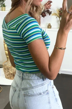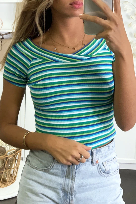 T-shirt Bleu Avec Rayure Croisé Au Buste