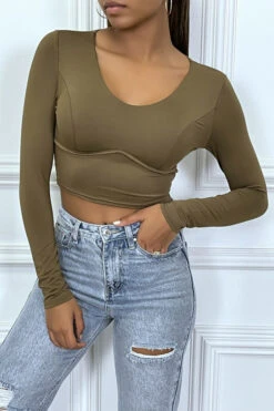 T-shirt court kaki Ă manches longues avec armature poitrine. Très tendance et simple Ă accessoiriser.Â