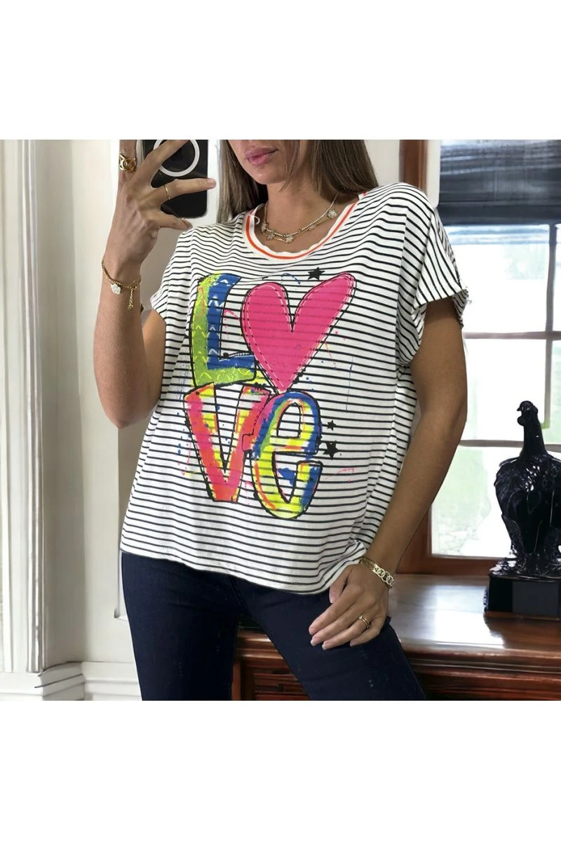 T-shirt Rayé Noir Et Blanc En Coton Avec écriture LOVE