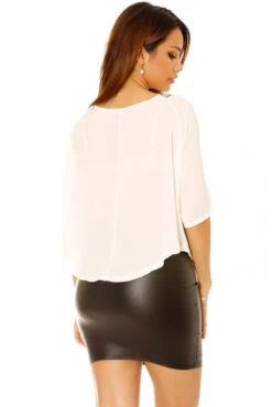 Mega destockage Top blanc avec dessin devant et motif azteque aux epaules. Haut petit prix 5560