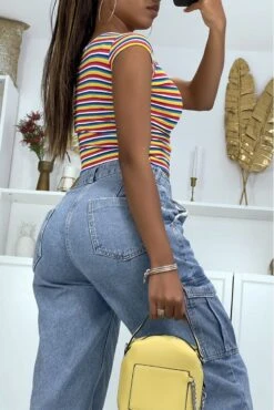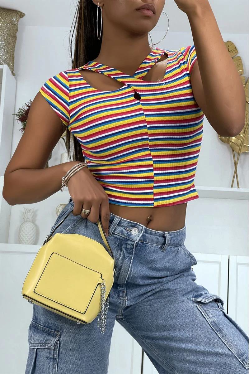 Top multicolore pour femme jaune rouge croisĂ© au buste. Mode femme pas cher et fashionÂ