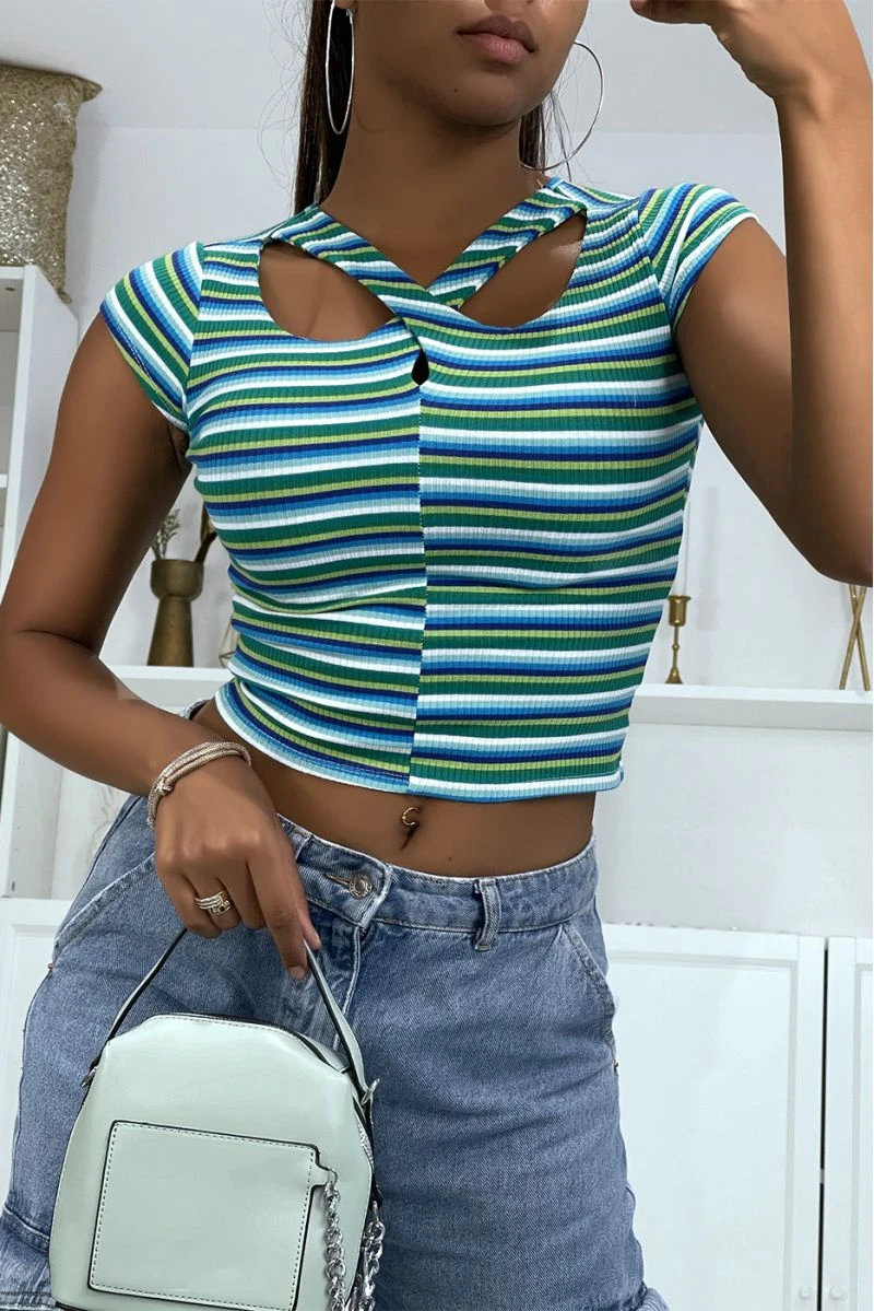 Top multicolore pour femme vert bleu croisĂ© au buste. Mode femme pas cher et fashionÂ