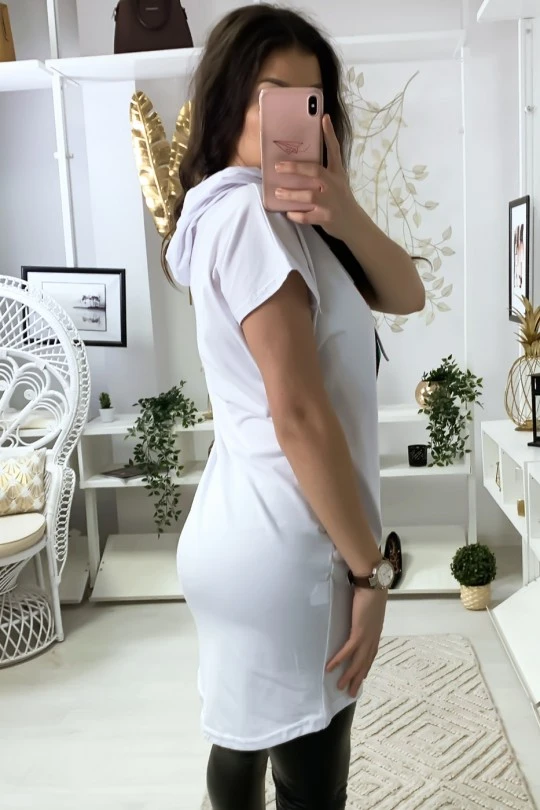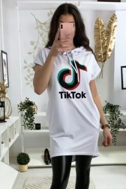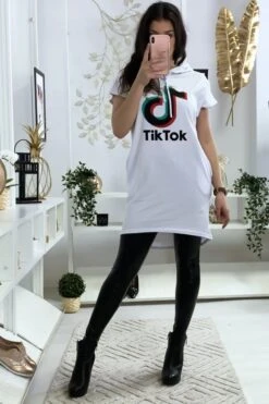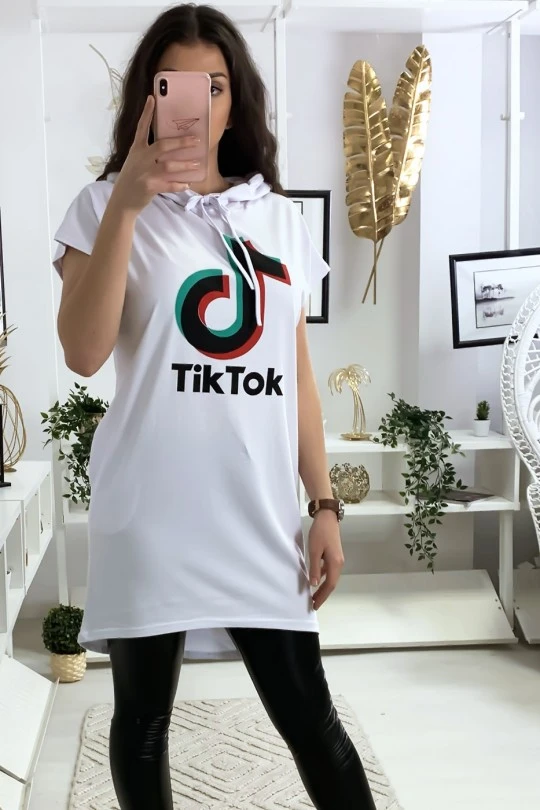 Tunique à capuche blanche avec écriture tik tok et capuche